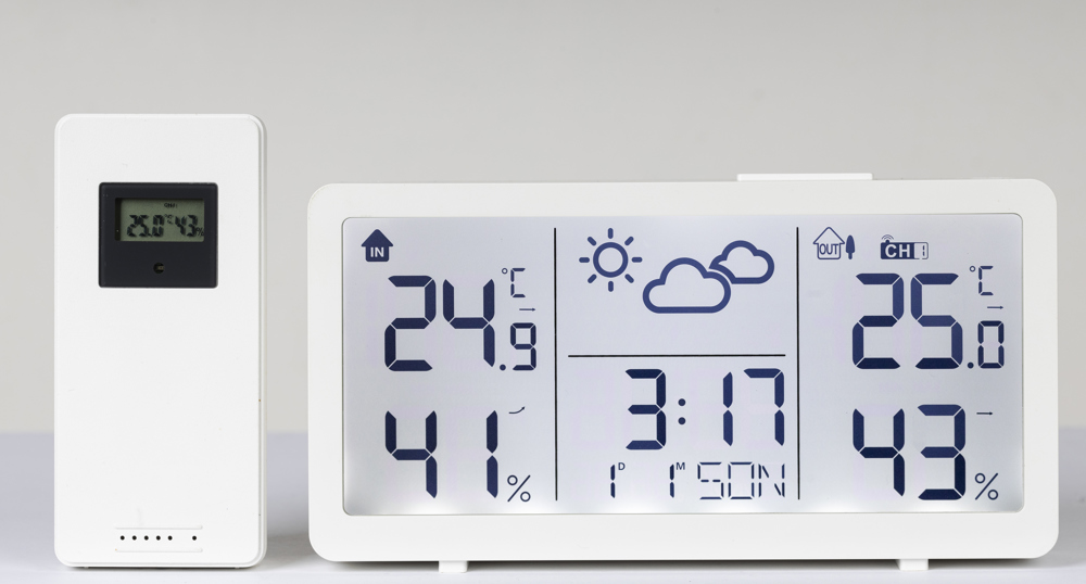 Wird es morgen schön? Erfahren Sie es schon heute! Verlässliche Daten dank des Barometer-Außensensors. Innen und Außentemperaturmessung, Hygrometer, Alarm und Hintergrundbeleuchtung. Inklusive Batterien: 2 x 2 AAA. Material: ABS. Maße (BxHxT) Wetterstation: 162 x 87 x 26 mm. Gewicht Wetterstation und Aussensensor mit Batterien: 257 g. Plastikfreie Einzelverpackung.