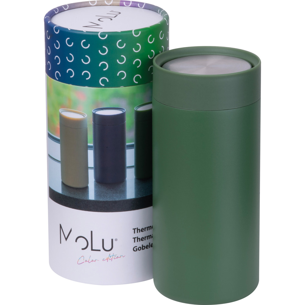 MoLu Color Edition – 360 mlStylischer Becher aus recyceltem Edelstahl, doppelwandig vakuumisoliert.Hält Getränke lange heiß oder kalt – ideal für unterwegs.Mit besonderem Farbdesign in mehreren Varianten – modern, frisch, charakterstark.Nachhaltig, kompakt und absolut alltagstauglich – der perfekte Begleiter im MoLu Look. Ihr Logo wird auf dem Body platziert.