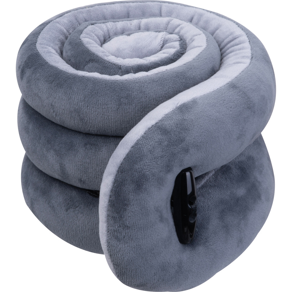 Kuschliges Nackenkissen aus Veloursamt. Durch das Verschlussband lässt sich das Nackenkissen im zusammengerollten Zustand einfach verschließen. Ihre Werbung drucken wir auf eine Seite des Kissens.