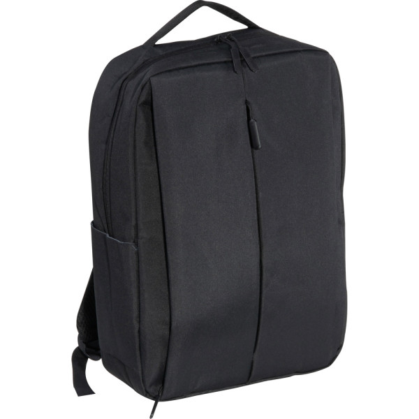 Laptoprucksack aus Polyester für 15 Inch Laptops. Er verfügt über zwei Reißverschlussvorfächer, ein großes Hauptfach mit Laptoppolsterung, diverse Einsteckfächer, gepolsterte Schultergurt, einen Tragegriff sowie einen Gurt zur Befestigung am Trolley. Ihre Werbung bringen wir am Vorfach an.
