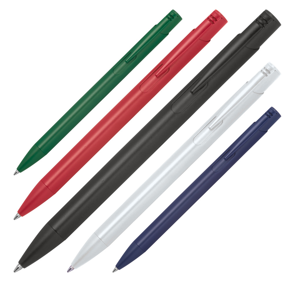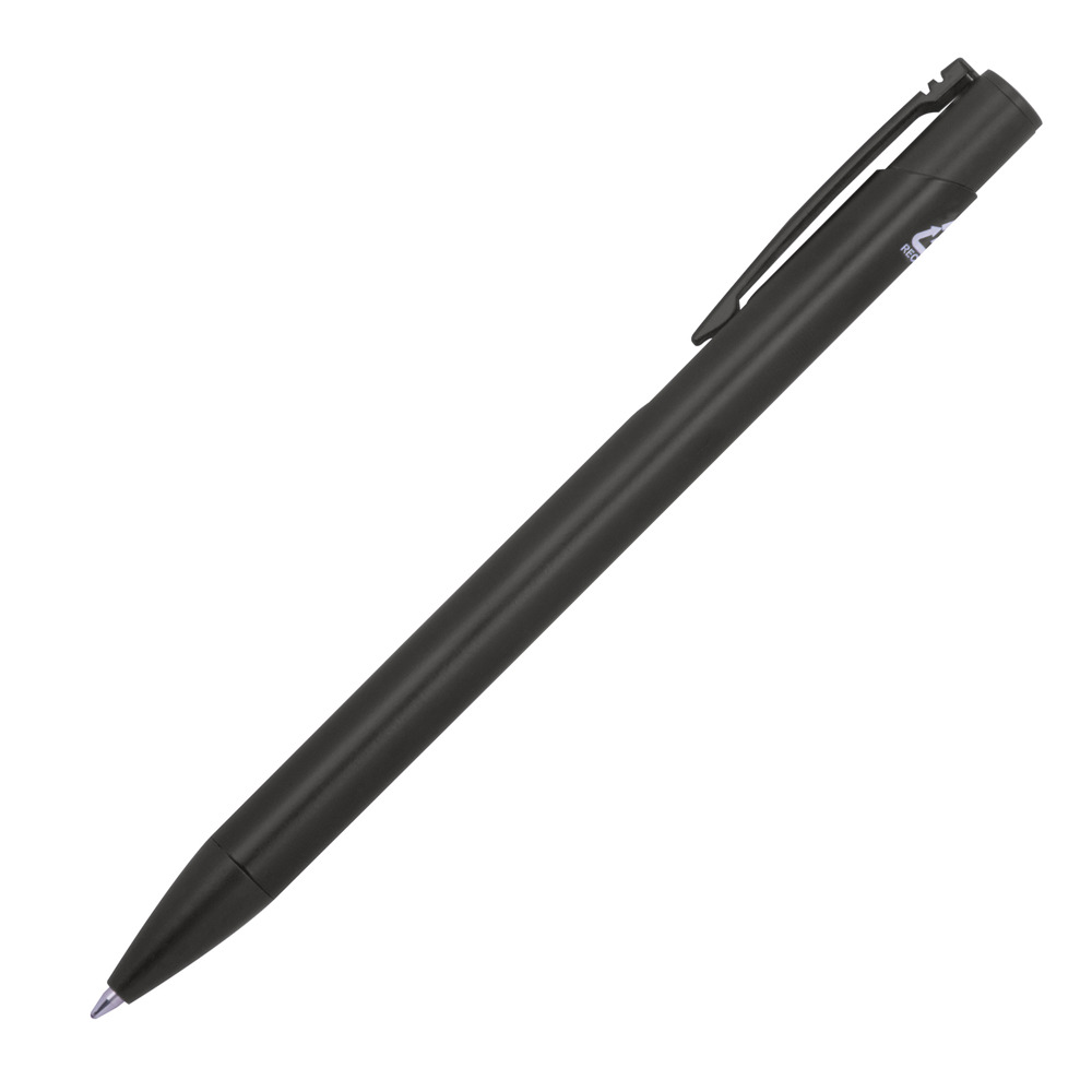 Vollfarbiger Kugelschreiber aus recyceltem Aluminium mit blauschreibender Großraummine. Ihre Werbung bringen wir mittels einer Lasergravur unterhalb vom Clip an.