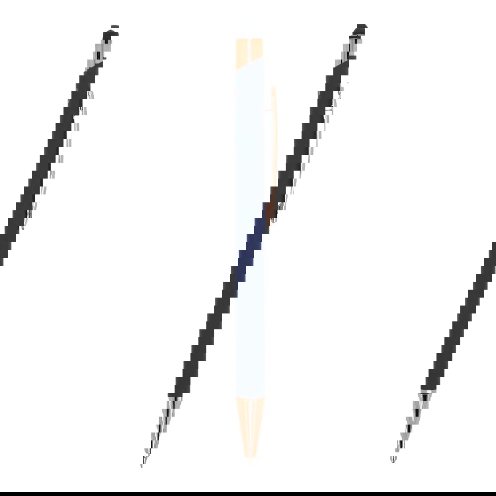 Stilvoller Kugelschreiber aus recyceltem Aluminium mit Metallclip. Die Farbe Rosa findet sich sowohl in den Akzenten des Kugelschreibers als auch in der Farbe der Lasergravur wieder. Der Kugelschreiber wird mit einer blauen Jumbo-Mine geliefert.