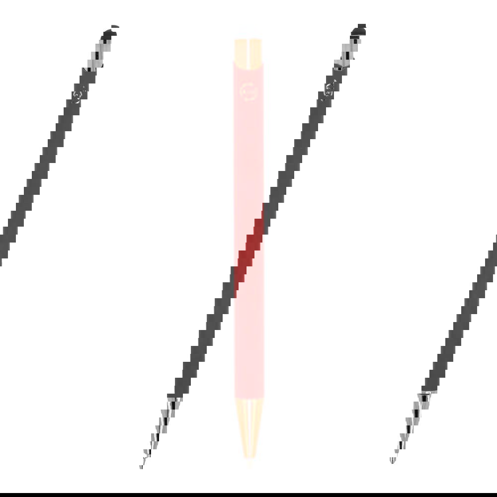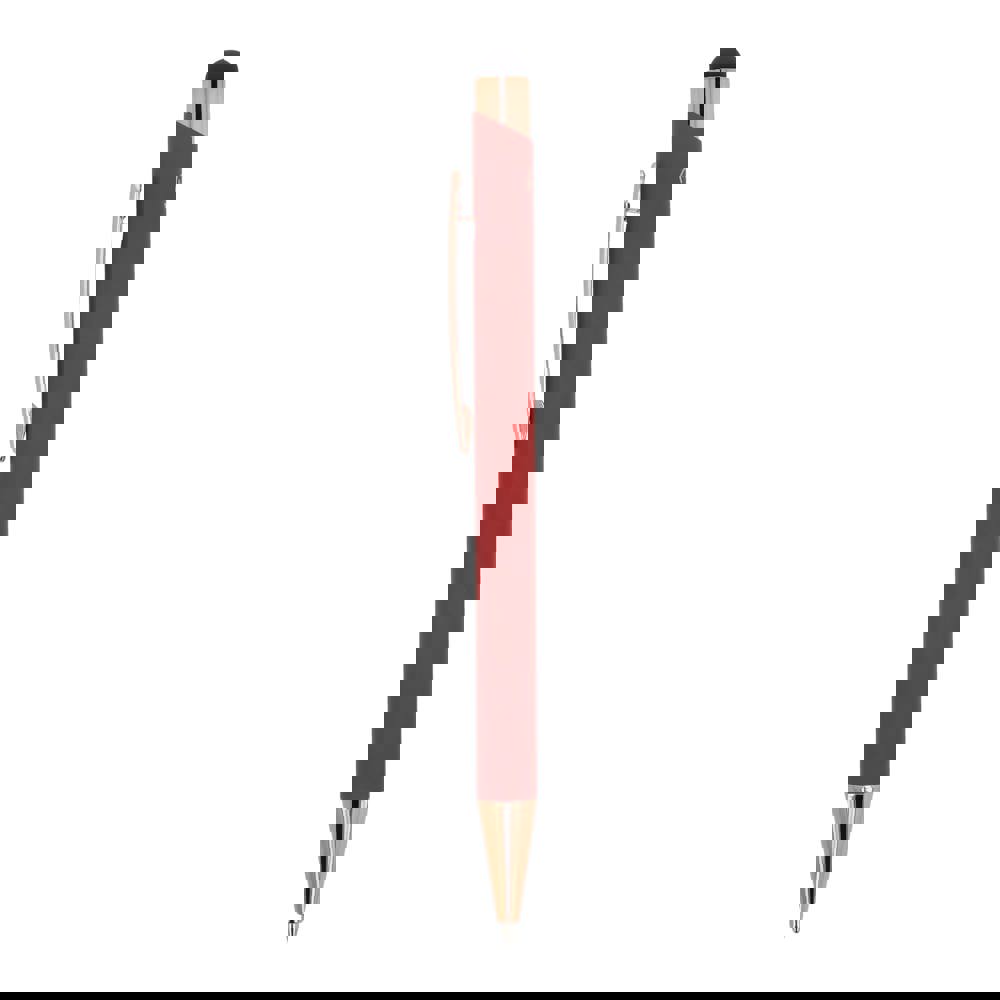 Stilvoller Kugelschreiber aus recyceltem Aluminium mit Metallclip. Die Farbe Rosa findet sich sowohl in den Akzenten des Kugelschreibers als auch in der Farbe der Lasergravur wieder. Der Kugelschreiber wird mit einer blauen Jumbo-Mine geliefert.
