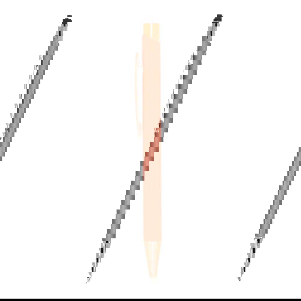 Stilvoller Kugelschreiber aus recyceltem Aluminium mit Metallclip. Die Farbe Rosa findet sich sowohl in den Akzenten des Kugelschreibers als auch in der Farbe der Lasergravur wieder. Der Kugelschreiber wird mit einer blauen Jumbo-Mine geliefert.