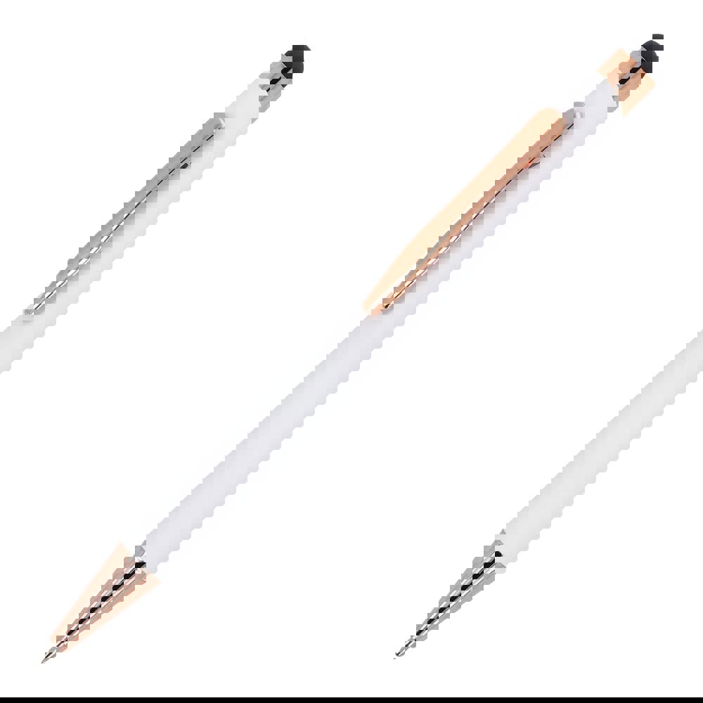 Stilvoller Kugelschreiber aus recyceltem Aluminium mit Metallclip. Die Farbe Rosa findet sich sowohl in den Akzenten des Kugelschreibers als auch in der Farbe der Lasergravur wieder. Der Kugelschreiber wird mit einer blauen Jumbo-Mine geliefert.