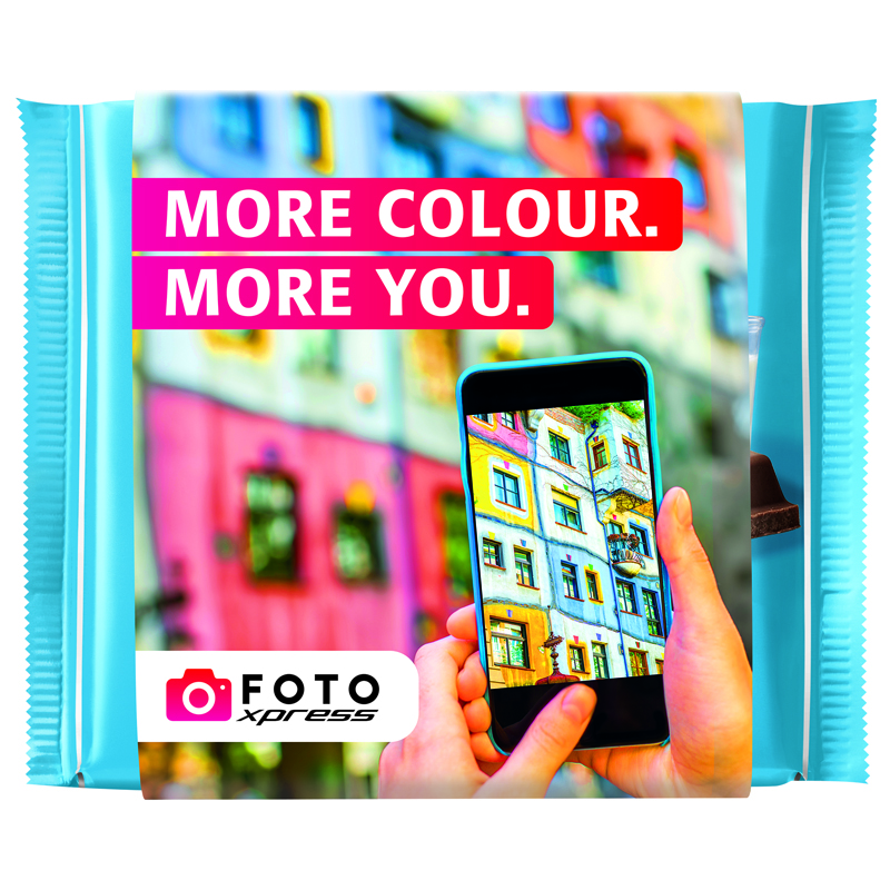 Ritter SPORT Schokolade 100 g in Werbeschuber aus weißem Karton, individuell bedruckt. Inhalt: 1... mehr