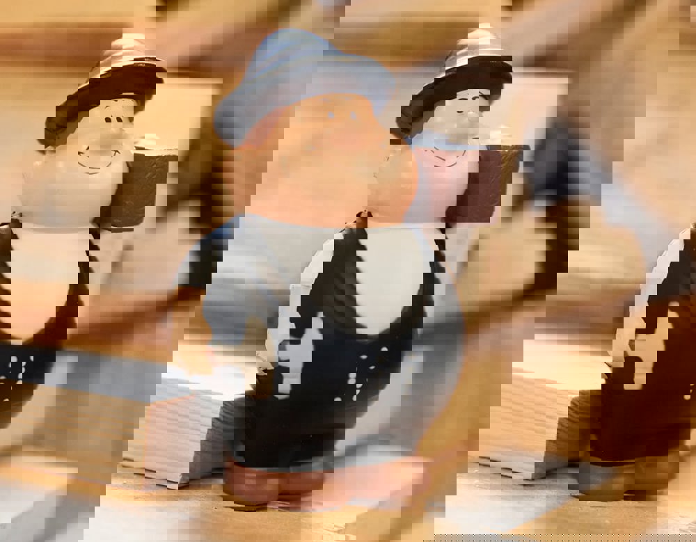 Hoch auf dem Dach hält der Zimmermann Bert® mal bei der Arbeit inne und lässt seinen Blick in die Ferne schweifen. Das bringt Ruhe und Entspannung, so dass er anschließend wieder tüchtig anpacken kann. Tun Sie es ihm gleich. Zwischendurch eine Pause einlegen und den SQUEEZIES® Zimmermann Bert® zum Stressabbau einfach "zusammenknautschen". Durch die Materialbeschaffenheit nimmt das Produkt die Ursprungsform wieder ein.