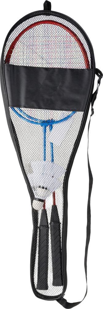 Federballspiel in Umhängetasche mit Griff, bestehend aus 2 Schlägern und 2 Federbällen.
