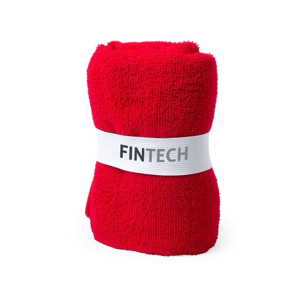 Saugfähiges Mikrofasertuch. Größe 40 x 90 cm, aus 160 g/m2 Mikrofasermaterial. Erhältlich in einer breiten Farbpalette, mit einem Gummiband in weißer Farbe zum Bedrucken.