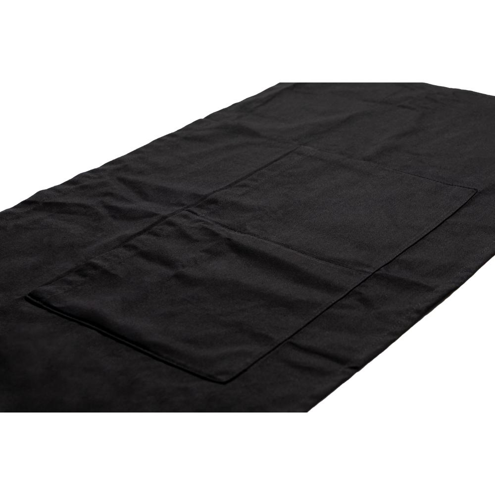 Für Gastronomie und Servier-Profis zuhause. Hochwertiger schwarze Taillen-Schürze aus Baumwolle (180 g/qm) mit zwei aufgesetzten Fronttaschen. Länge seitliche Bänder: jeweils ca. 85 cm.
