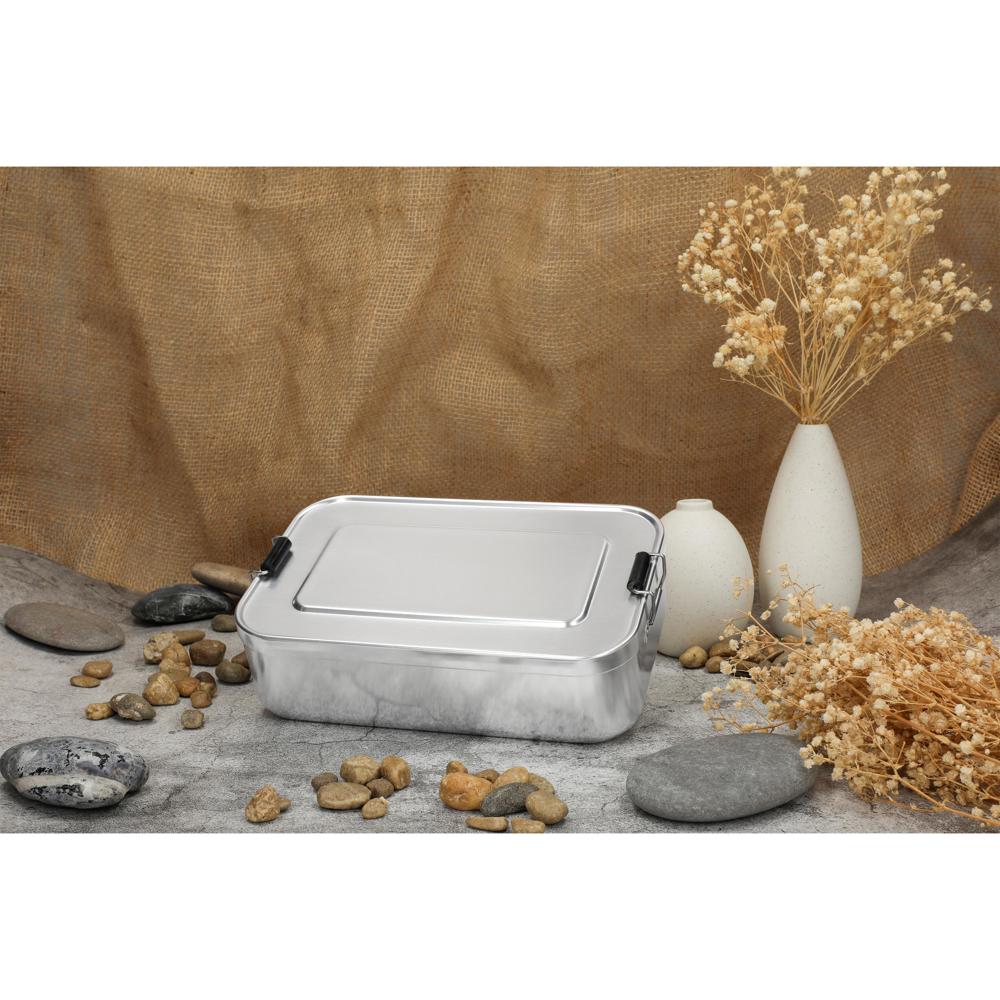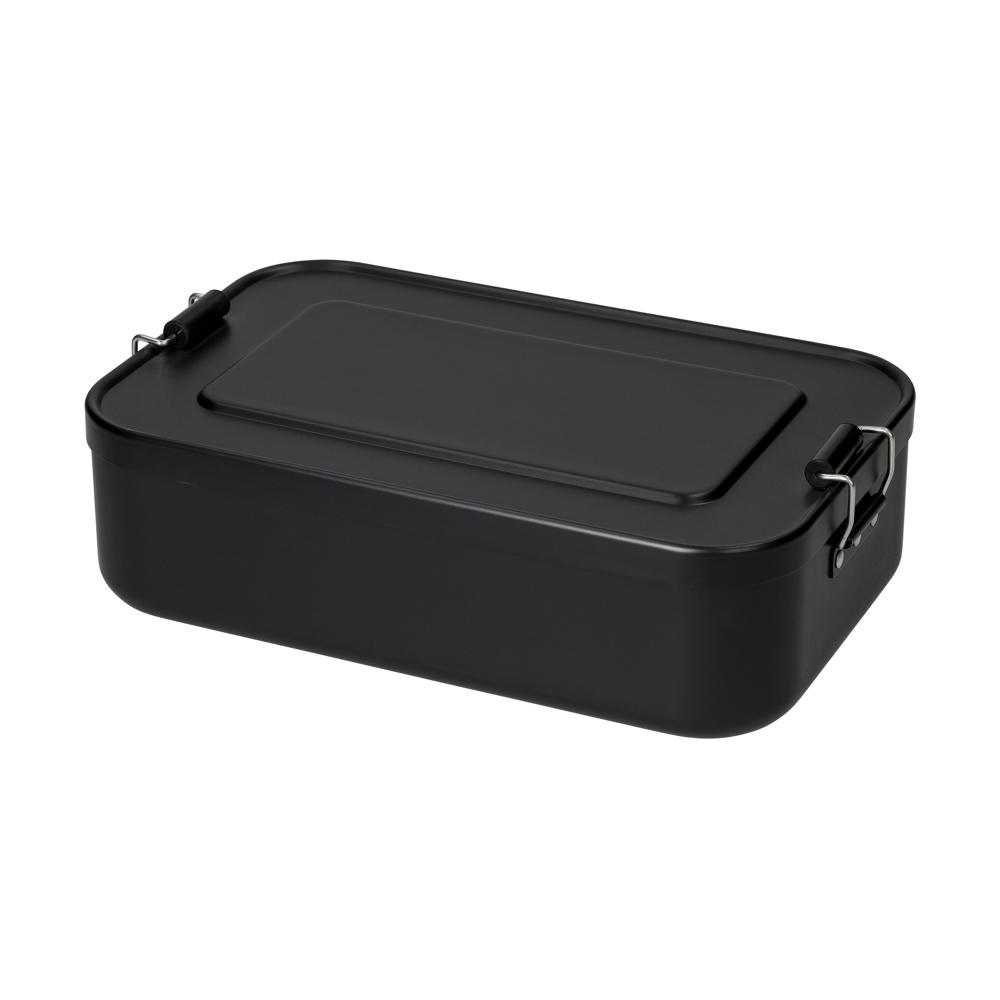 Geräumige Brozeitdose aus Aluminium mit zwei Klemmbügeln für sicheres Verschließen. Der Deckel kann komplett abgenommen werden. Sehr robust und widerstandsfähig.