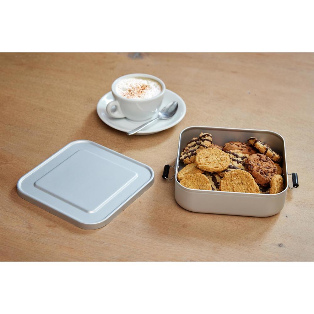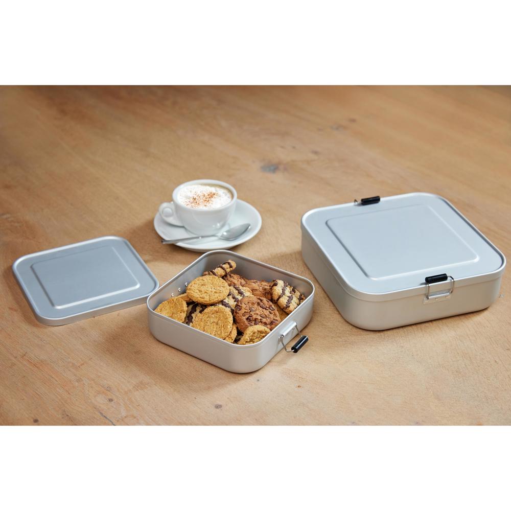 Kleine, quadartische Brotzeitbox aus Aluminium mit einer matten Oberfläche. Sicher verschließbar... mehr