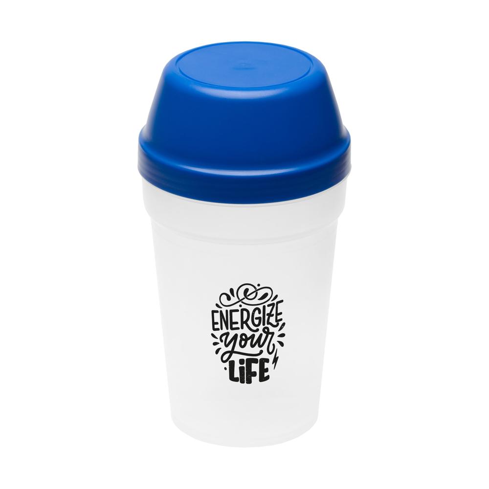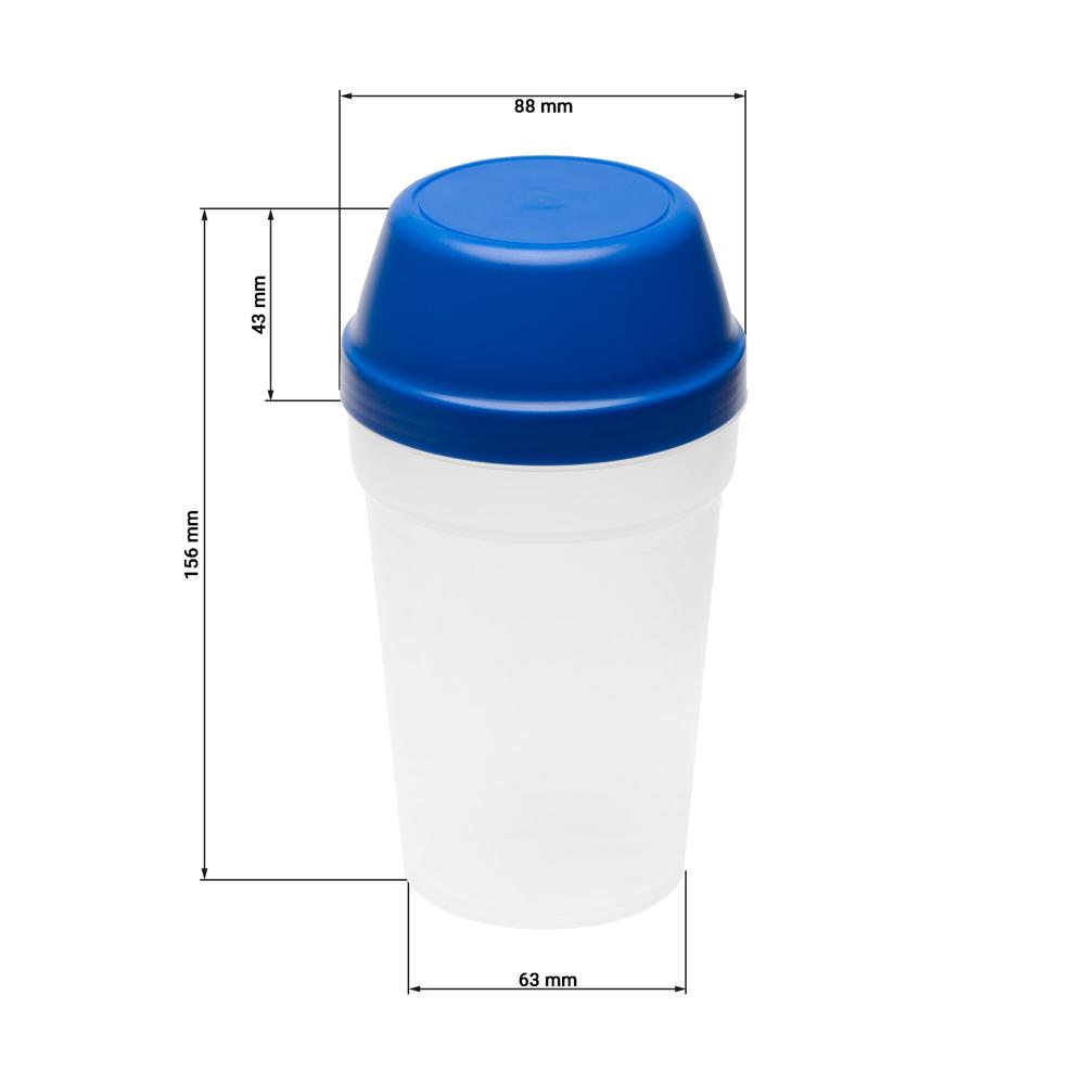 Handlicher Becher und Deckel mit Drehverschluss. Optimal für Mixgetränke oder zur Aufbewahrung von Haushaltszutaten geeignet. Füllmenge: 0,3 Liter.