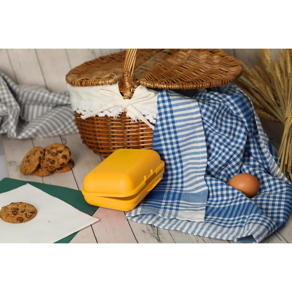 Praktische Vorratsbox. Hält Ihre Brotzeit oder andere Lebensmittel lange frisch. Mit 1 Klickverschluss. IMould-Veredelung möglich.
