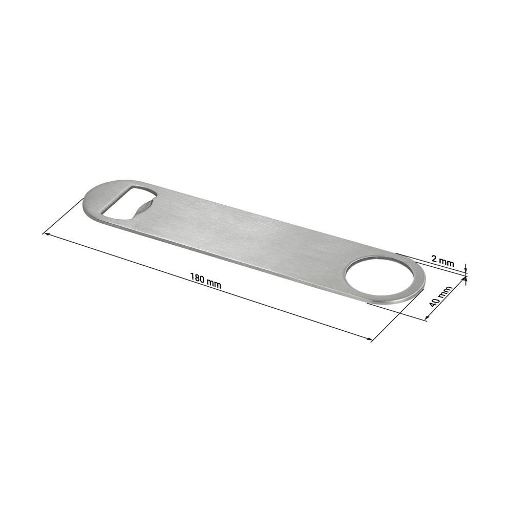 Einfach, aber wirkungsvoll. Flacher Flaschenöffner aus Edelstahl. Eignet sich aufgrund des Loches perfekt für kleine Spinner-Shows hinter der Bar. Außerdem gut an magnetischen Oberflächen zu befestigen.