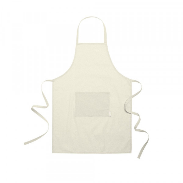 Nature Line Schürze, hergestellt aus recycelter Baumwolle. Mit Fronttasche und Verstellriemen, unterhalb des Knies geschnitten. Erhältlich in einer Vielzahl von Farben, mit Etikett aus recycelter Baumwolle.
