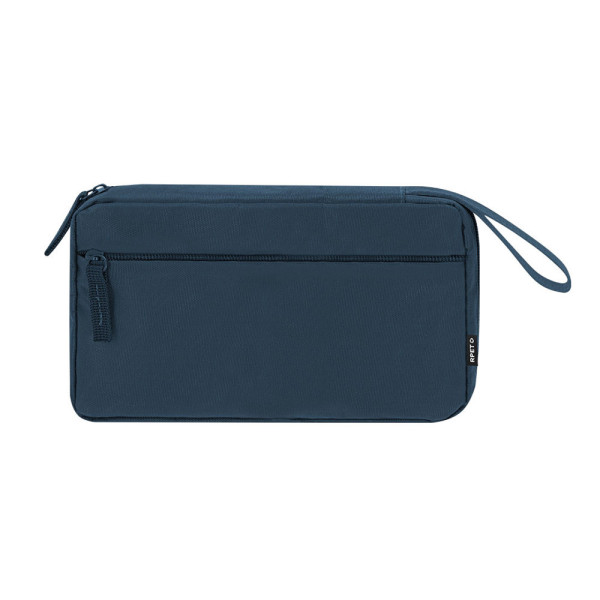 Organizer-Hülle aus 900D RPET. Hauptfach mit doppeltem Metallreißverschluss für vollständige Öffnung und mehreren Innenfächern, ideal zur Aufbewahrung von Kabeln: 3 Fächer mit Gummibändern und 1 Fach mit Reißverschluss. Enthält außerdem eine Außentasche mit unsichtbarem Reißverschluss und einen Griff für einfaches Tragen. Mit RPET-Label.Das RPET-Material wird aus recyceltem Kunststoff hergestellt und fördert somit die Wiederverwendung von Plastikabfällen und trägt zur Nachhaltigkeit des Planeten bei.
