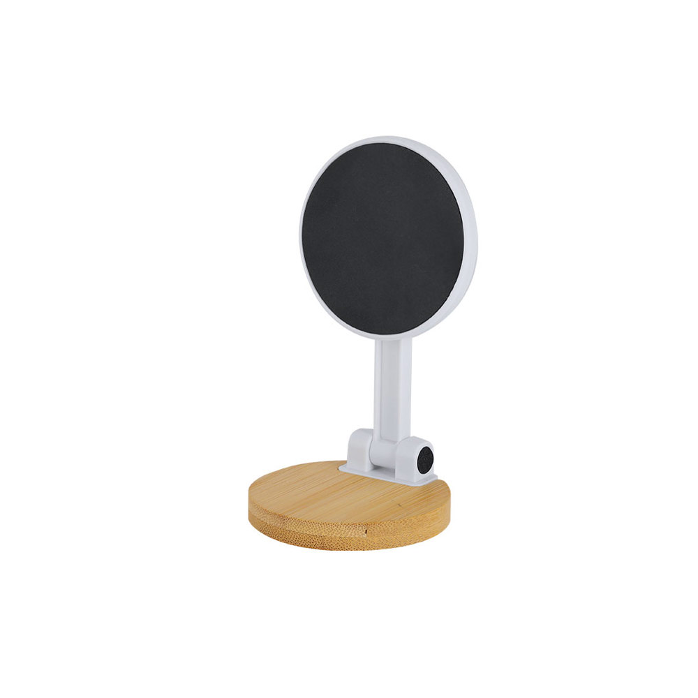 Faltbarer Ständer für Smartphones. Mit magnetischer Befestigung, MagSafe und verstellbarer Position für mehr Komfort. Inklusive einem klebbaren Metallring.Materialien wie Bambus fördern die Verwendung von natürlichen Rohstoffen und reduzieren die Emissionen schädlicher Stoffe. Er stammt von einer Pflanze mit hoher Festigkeit und Vielseitigkeit, die schnell wächst und sich regeneriert und eine hervorragende Alternative zur Verwendung von traditionellem Holz darstellt.