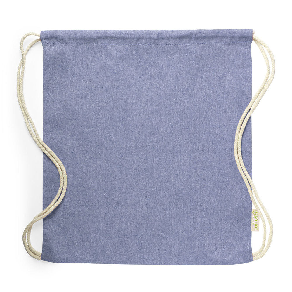 Linie Natur Rucksack mit Kordelzug aus recycelter Baumwolle 120 g/m2. Selbstschließende Kordeln aus Baumwolle, mit Öko-Label an der Seite und in einer breiten Palette von Naturfarben erhältlich. Belastbar bis zu 9 kg Gewicht.