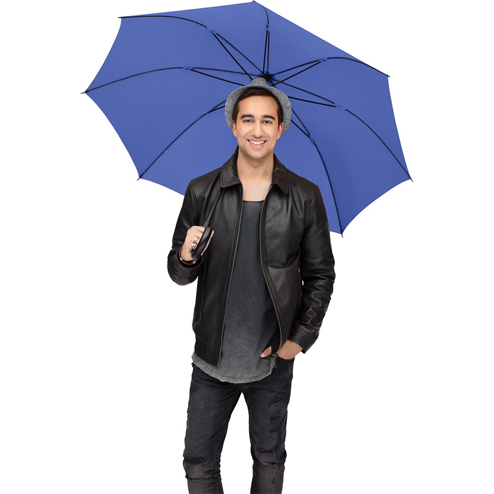 Preislich attraktiver Gästeschirm für zwei Personen mit Windproof-System Komfortable Automatik-Funktion zum schnellen Öffnen, Windproof-System für höhere Gestell-Flexibilität und bessere Windsicherheit, flexible Fiberglasschienen, matt-schwarzer Kunststoff Rundhakengriff, höherer Korrosionsschutz durch schwarze Galvanisierung des Stahlstocks. Auch als Stockschirm (Art. 1104) erhältlich.