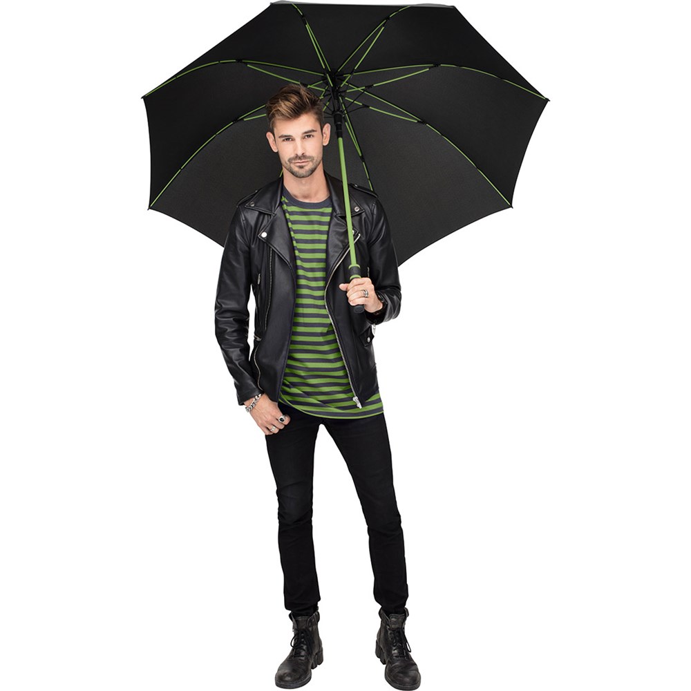 | Material: | Bezug: 100% Polyester-Pongee (recycelt & waterSAVE®) Griff: Kunststoff Stock: Stahl, Kunststoff |