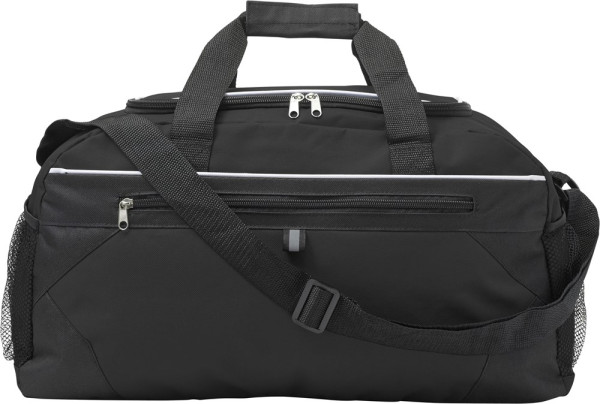 Sporttasche aus Polyester (600D), mit RV-Haupt- und Frontfach, seitlichen Netzfächern, verstellbarem Schultergurt und Tragegriffen.