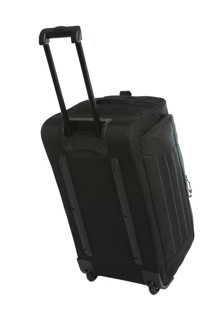 geräumiges Reißverschluss-Hauptfach; Reißverschluss-Vortasche mit dekorativer Steppung; Teleskopgriff; Leichtlauf-Rollen; Handgriffe mit Griffmanschette; abnehmbarer, längenverstellbarer Schultergurt mit Schulterpolster