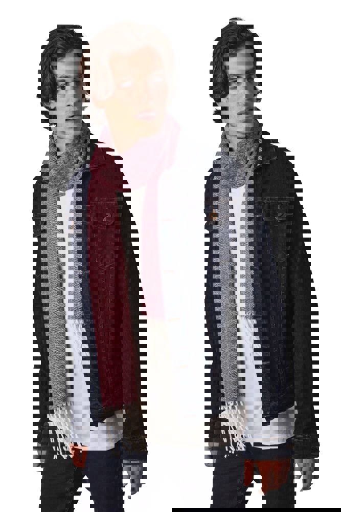 100% Acryl. Gewebter Schal mit Fransen. Weiche, leichte Textur.
