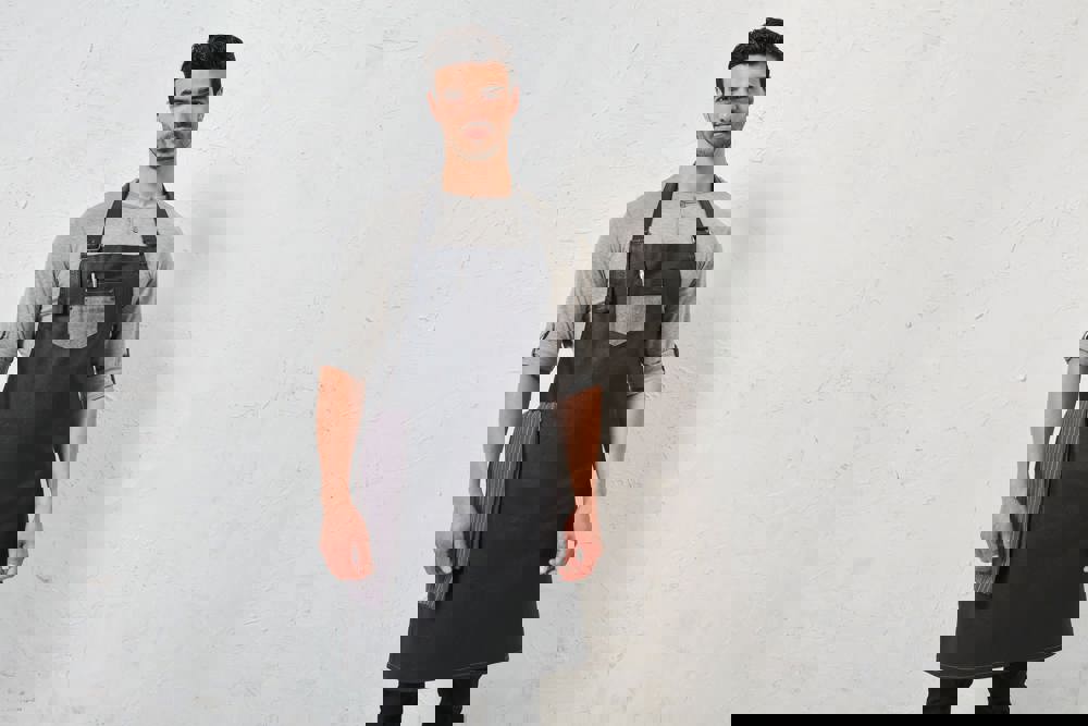 100 % Baumwolldenim und Acryl. Oiled-Effekt. Rustikale Latzschürze für einen gelungenen Vintage-Stil. Details aus kontrastfarbenem Stoff ergeben einen hochwertigen, stilvollen Look, während die Kunstlederdetails die Schürze zugleich authentisch und luxuriös erscheinen lassen, was in vielen gastronomischen Einrichtungen sehr geschätzt wird. Wasserabweisende Oberfläche dank des Oiled-Effekts. Bindeband an Taille und Nacken aus Kunstleder. Bindeband am Nacken mit verstellbarer Schnalle. Denim-Effekt dank garngefärbtem Stoff. Länge: 86 cm. Breite: 72 cm.