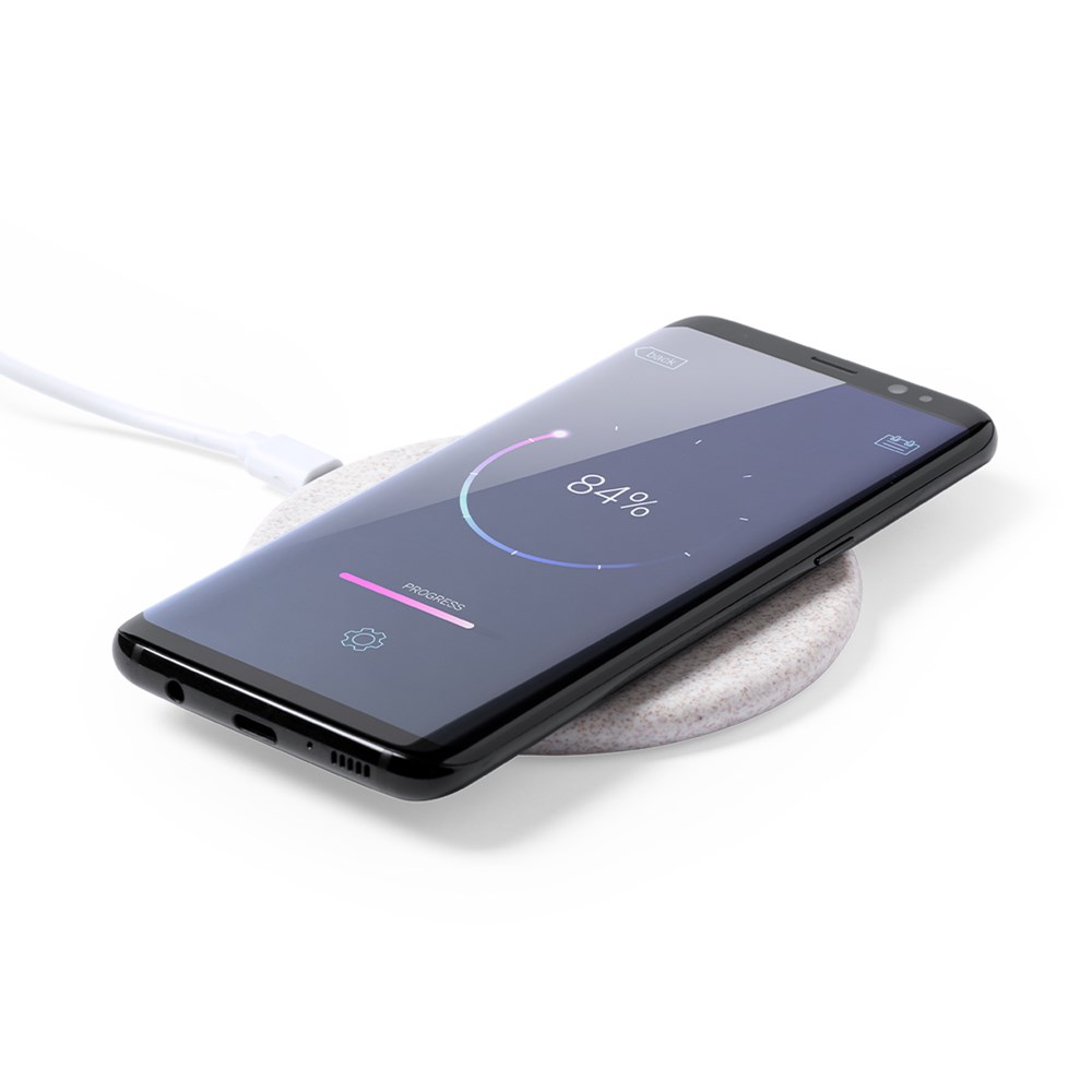 Drahtloses Ladegerät mit einem runden Design aus Weizenstroh, um die Verwendung natürlicher Rohstoffe zu fördern und Schadstoffemissionen zu reduzieren.Mit 10W-Schnellladefunktion und LED-Anzeige. Micro-USB-Ladekabel im Lieferumfang enthalten und kompatibel mit Geräten, die mit drahtloser Ladetechnologie ausgestattet sind. Sicherheitsschutz zur Vermeidung von Überhitzung, Überladung und Kurzschluss. Präsentiert in einer attraktiven Box im Naturdesign.