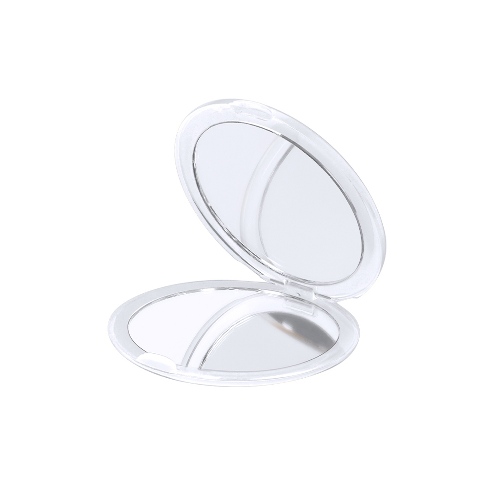 Klappspiegel in vielen kräftigen, halbtransparenten Farben. Mit zwei Innenspiegeln mit 1x/2x Vergrößerung.