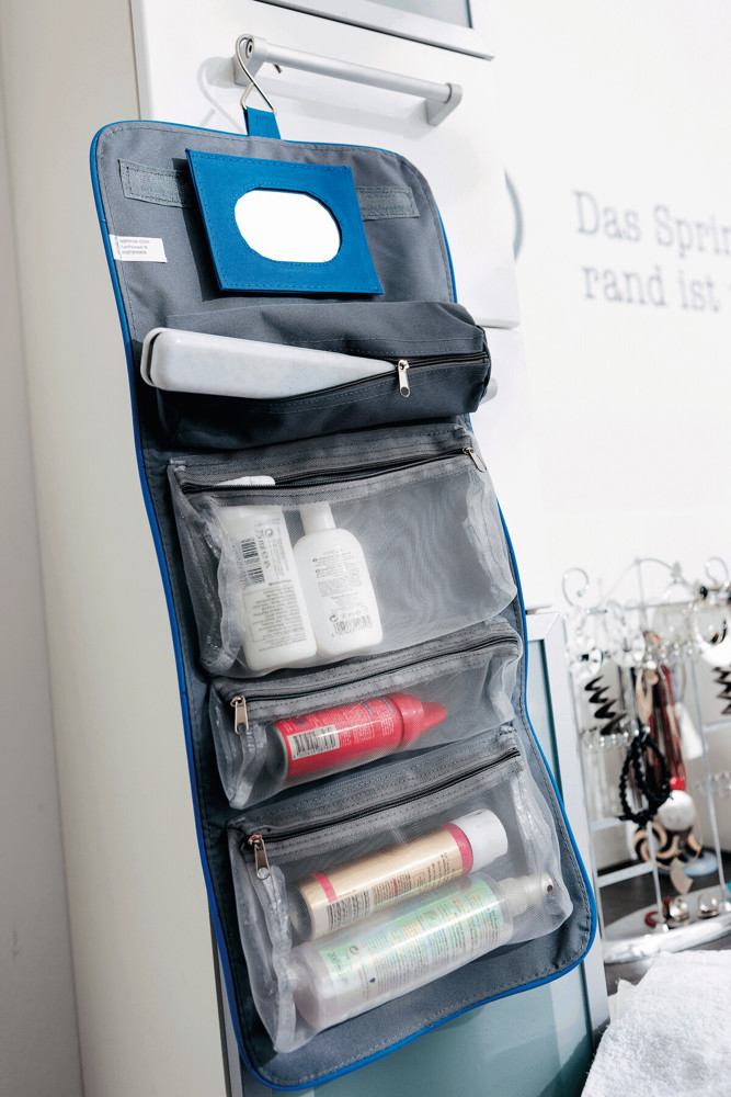 Kosmetiktasche STAR: mit 5 Reißverschlusstaschen, abnehmbarem Spiegel, Tragegriff und Metallhaken zum Aufhängen